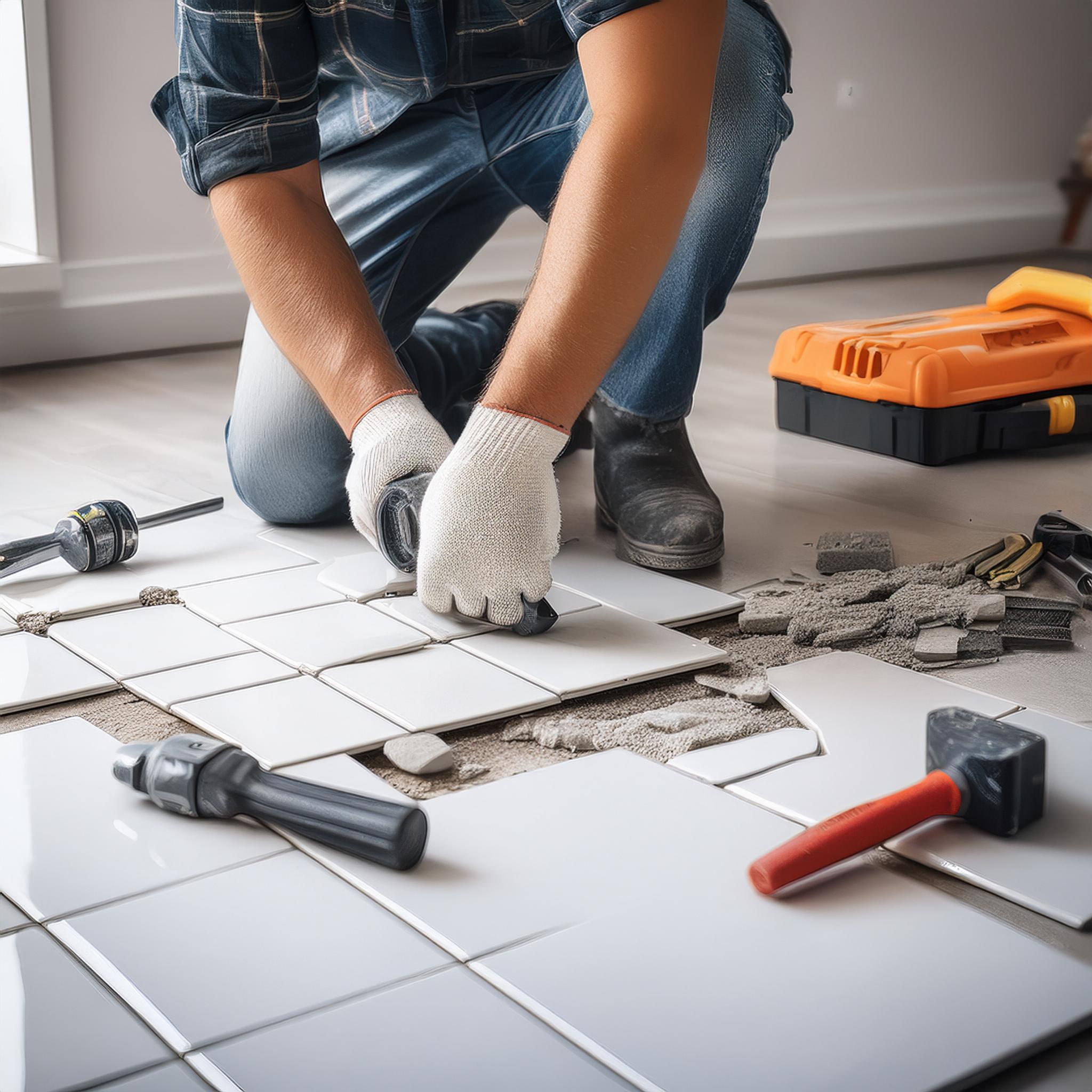 Ausbesserung oder Erneuerung von beschädigten Bodenbelägen wie Fliesen, Laminat oder Parkett.